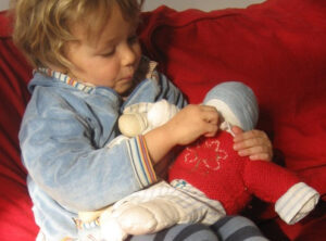 Durch das Spiel mit der Puppe eignet sich das kleine Kind Welt an. Dadurch löst sich das Kind aus der Verbundenheit mit der ihn umgebenden Welt heraus, entdeckt das Andere.