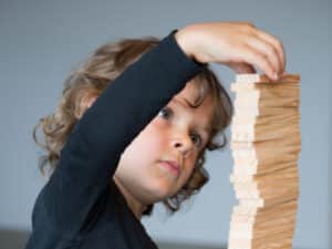 - Begib Dich kurz in die Welt des Kindes: „Oh, was für ein wunderschönes Hochhaus Du baust! Kommst Du voran?“ Und „sammle“ ein Nicken und Lächeln Deines Kindes ein.